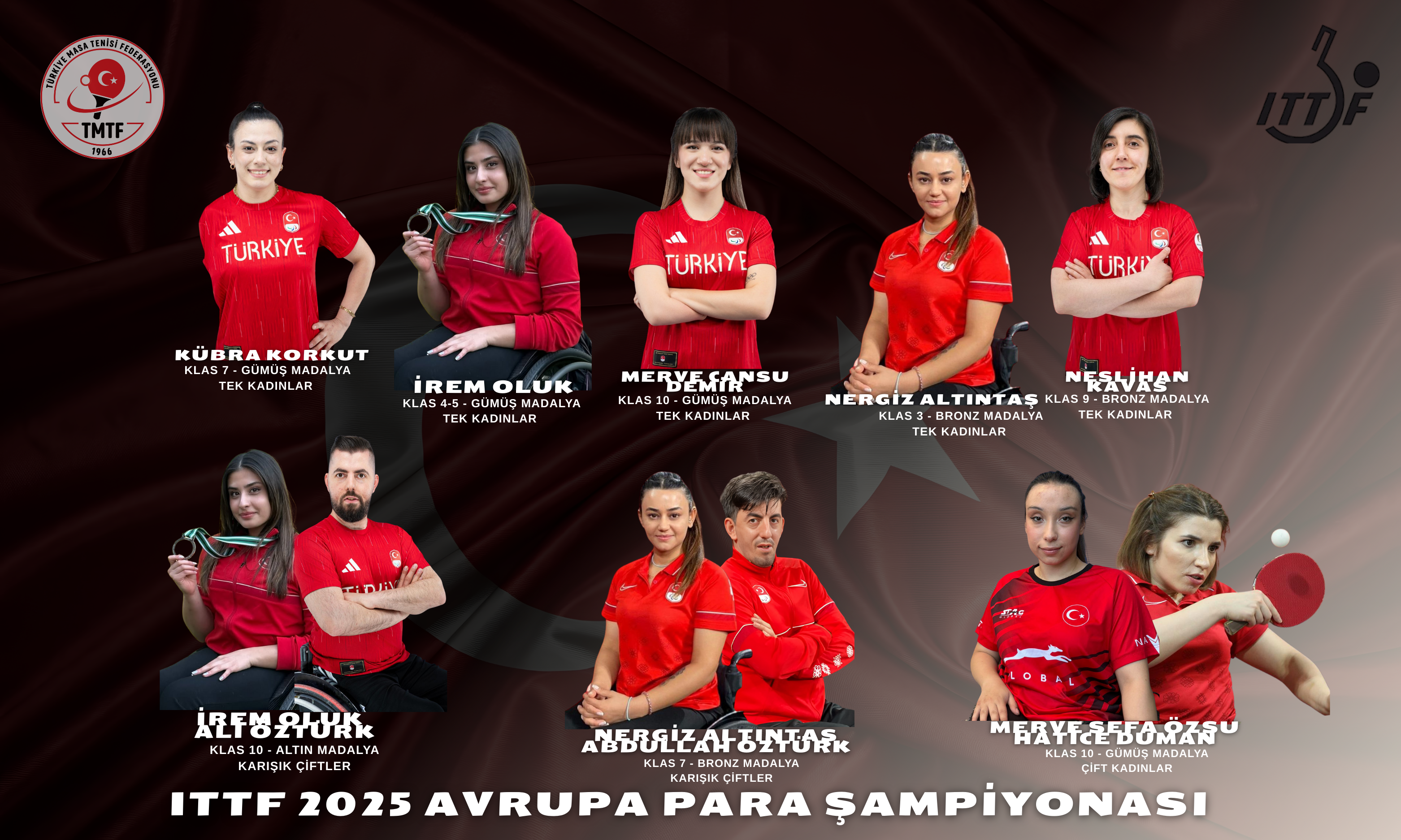 20–25 Kasım 2025 tarihleri arasında İsveç’in Helsingborg kentinde düzenlenen ITTF 2025 Avrupa Para Masa Tenisi Şampiyonasında millî sporcularımız hem tekler hem de çiftler kategorilerinde önemli başarılara imza attı. Sporcularımız şampiyonayı toplam 8 madalya ile tamamlayarak önemli bir başarıya imza attı.