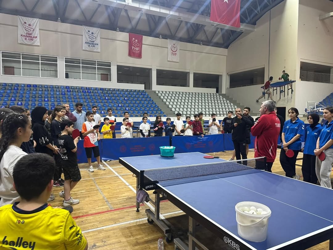 Antrenör Gelişim Programı’nın 10. Etabı Bingöl’de Tamamlandı 13–15 Şubat 2026 tarihleri arasında düzenlenen Antrenör Gelişim Programı’nın 10. etabı, Bingöl’de tamamlandı. Bingöl merkez ve ilçelerinden antrenörlerin yoğun katılımı ile sporcuların seminere gösterdiği ilgi, ilde masa tenisinin gelişim potansiyelini ortaya koydu. Eğitim, Milli Takım Antrenörümüz Recep Bezenmiş tarafından verilirken; yeni başlayan sporcular için temel teknik yaklaşımlar, performans sporcuları için ise güncel antrenman programları ve video analizleri antrenörlerle paylaşıldı. Program kapsamında Bingöl Gençlik ve Spor İl Müdürü Mahmut Uğur ziyaret edilerek, masa tenisinin gelişimine yönelik çalışmalar hakkında görüş alışverişinde bulunuldu.
